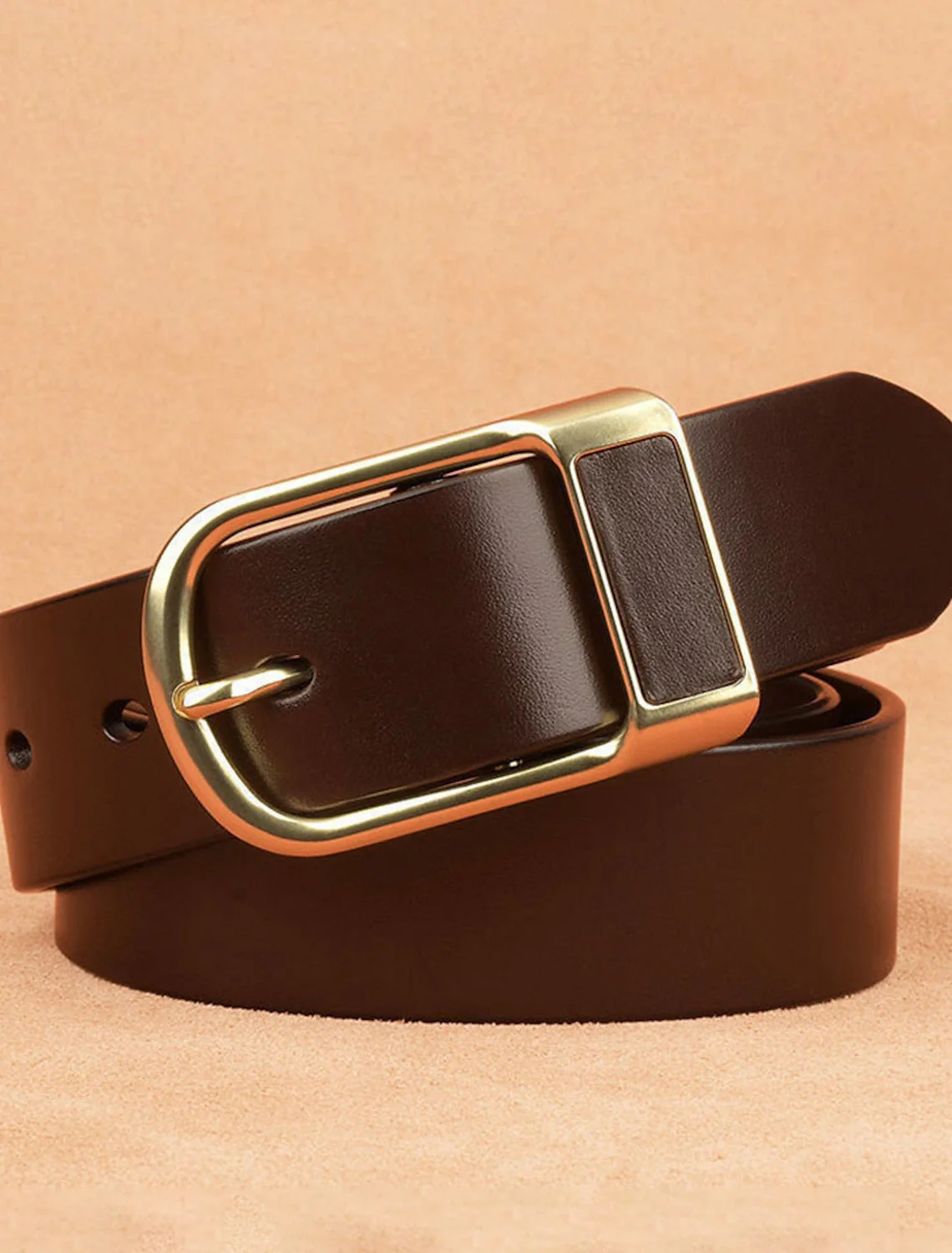 Men’s Leather Casual Ratchet Belt Classic Jean Belt Black Brown Cowhide Stylish Gentleman Plain Daily Wear