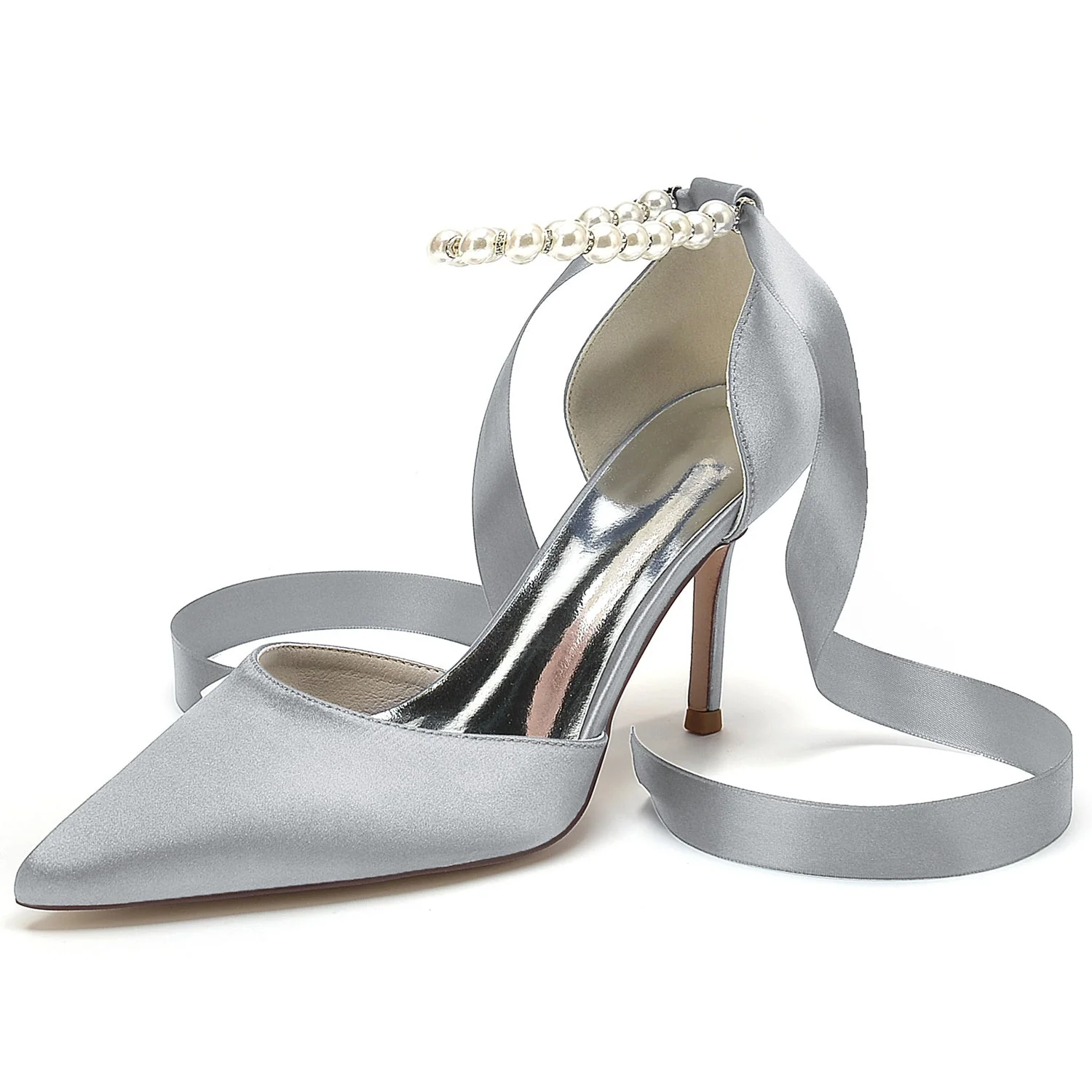 Women’s Wedding Shoes Pointed Toe Stiletto Heel Pearl Bow Buckle Bridal Shoes